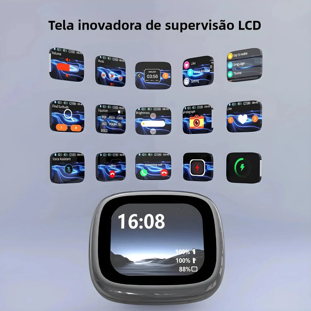 Autonomia: 30h (fones) + 120h (case).